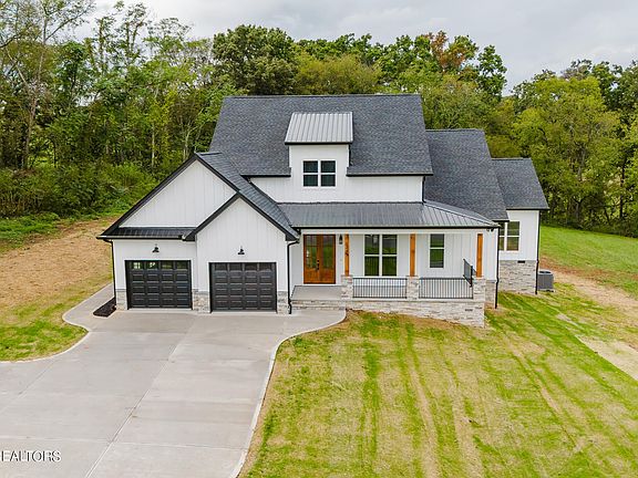 A new farmhouse with beautiful mountain views, 2 covered porches, 3 bedroom + office, 3.5 bath. This house has two masters! Beautiful LVP flooring throughout including a stacked stone gas fireplace. 9ft ceilings throughout and 11ft in the living room. This 2341 sq feet home is nestled on a .96 acre prime exterior lot with a private back yard. The house is open concept floor plan with granite countertops, soft close cabinets, 60 inch handmade vent hood, fridge, dishwasher , double dual fuel stoves(with a full 100lb propane tank), gas top electric convection ovens, microwave drawer, washer & dryer, farmhouse sink, prep sink and large walk-in pantry. Has possible pool/detached garage/man cave site. Lots of storage available in the attic! This home is perfect for your front porch swing, watching your wildlife, and sipping on your sweet tea and for entertaining game days on your back porch. Come see what this new home has to offer!