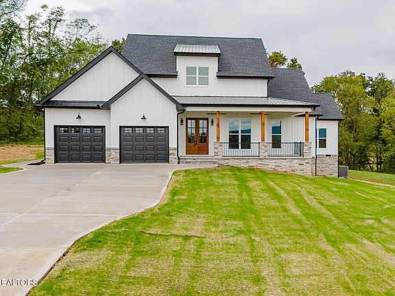 A new farmhouse with beautiful mountain views, 2 covered porches, 3 bedroom + office, 3.5 bath. This house has two masters! Beautiful LVP flooring throughout including a stacked stone gas fireplace. 9ft ceilings throughout and 11ft in the living room. This 2341 sq feet home is nestled on a .96 acre prime exterior lot with a private back yard. The house is open concept floor plan with granite countertops, soft close cabinets, 60 inch handmade vent hood, fridge, dishwasher , double dual fuel stoves(with a full 100lb propane tank), gas top electric convection ovens, microwave drawer, washer & dryer, farmhouse sink, prep sink and large walk-in pantry. Has possible pool/detached garage/man cave site. Lots of storage available in the attic! This home is perfect for your front porch swing, watching your wildlife, and sipping on your sweet tea and for entertaining game days on your back porch. Come see what this new home has to offer!