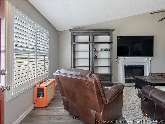 Welcome to your retreat in Lake Rim Shores! This charming 3-bedroom, 2-bathroom ranch sits on just over an acre lot. Step inside to discover laminate flooring throughout the main living spaces, providing both durability and aesthetic appeal. The vaulted ceiling in the living room adds an airy feel, accentuated by a cozy fireplace. The eat-in kitchen features stainless steel appliances with white cabinetry and a stylish backsplash. The formal dining room offers additional space for entertaining or to make your own. Step outside to enjoy the patio in the privacy fenced backyard. Convenient to shopping, restaurants, and an easy commute to Fort Liberty. Don't miss out on the opportunity to make this delightful home yours!