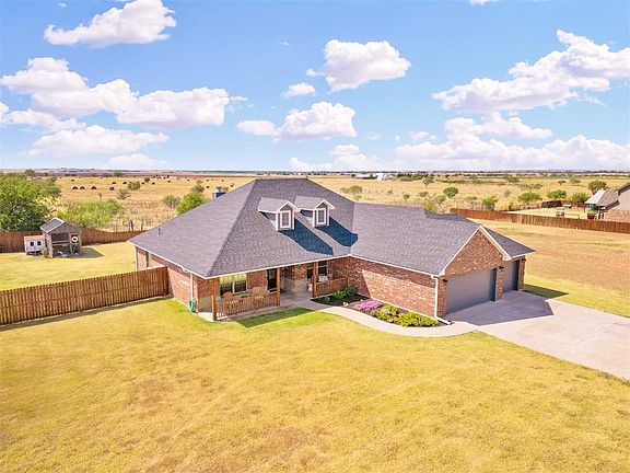 You will fall in love with this gorgeous luxury home on Lawton's SW side in popular Deyo Landing Addition! Brick and stone were perfectly combined to compliment a quaint country porch and offer curb-appeal in this wonderful 4 bedroom home that is less than 12 years young & boasts over 2400 sqft with 4 large bedrooms, 3 baths, and a 3-car garage to accommodate all the toys you may want on a huge 1+ acre yard. This was already a stunning home and the seller has spared no expense and lovingly touched every surface with most tasteful updates to where this home now shows like pages out of the Pottery Barn catalog. So beautiful! The eat-in kitchen now features stunning quartz countertops with custom subway tile back splash, matching stainless steel appliances, ceramic top range with top-of-the-line stainless steel microwave and vent hood and a truly stainless (no fingerprints visible, ever) refrigerator that stays, a wine chiller fridge, a breakfast bar that seats 6+ and custom knotty alder cabinetry with fluted corners that exudes craftsmanship and style. The spectacular ceiling with intricate architectural beams and chandeliers rounds out the details of the spacious, open concept flow of the home to perfection. The living room offers a tumbled stone, true wood burning fireplace to gather around and keep you warm on a cold winters day that is framed by 2 picture windows for natural light infusion, overlooking the back patio and a huge yard that could easily accommodate a pool and a pond and has a chicken coop that stays to ensure limitless supply of your own organic, cage free eggs. Wow! The primary bedroom is isolated and has a cozy sitting area, ship-lap inlay pan ceilings and an enormous en suite bath that is complete with a double quartz counter vanity, whirlpool tub, separate glass enclosed shower and 2 walk in closets with California built-ins. The west wing offers two spacious bedrooms and a full hall bath while the front bedroom could be a study or make a fabulous guest room as it features an en suite full bathroom. The spacious laundry room off the kitchen impresses with a sink, loads of extra cabinetry and counter top space where high efficiency washer & dryer sets along w/pedestals comfortably fit. Carpet in the bedrooms, honey comb ceramic tile and absolutely beautiful hardwood floors throughout are the floor coverings in this spectacular home. Imagine! You can comfortably sit on the covered patio on a warm Oklahoma morning and enjoy your morning cup of coffee with the backdrop of a Wichita Mountain sunrise, entertain a large group of guests or have family BBQs. Located in the most desirable Cache school district, nestled just south west of Lawton, away from the hustle and bustle of the city yet close to the new Target & TJ Maxx shopping center, Goodyear Plant & Ft Sill. Welcome Home! Please call or text Stefanie Johnson at 580 583 5238 for more information or to schedule a showing.