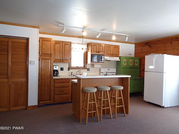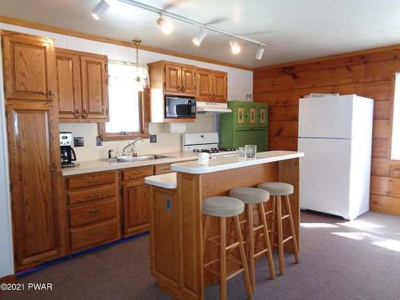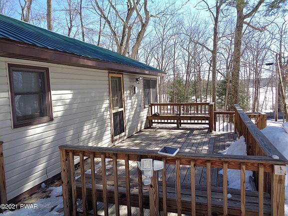 An unusual find...updated and in mint condition, a PA State Cabin with garage/barn on State Land, plus, your own well and indoor plumbing! Large and open with lots of room for all...2 bedrooms, newly renovated bathroom with shower and running hot and cold water, propane fireplace in huge living room with more sleeping space...spacious deck with lake views of Pecks Pond...new metal roof on cabin and all of the out buildings...garage/barn with loft and carport on the side, circular driveway and an outhouse. Fish, kayak, hunt, hike or go 4-wheeling on nearby trails...also close to motorboating Lake Wallenpaupack...located in an area with so much to do...or just come and relax...memories are made here. Must be a Pennsylvania Resident. Cash Transaction Only.