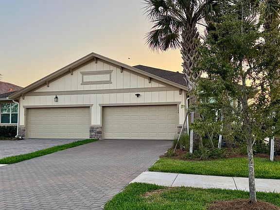 Welcome to this beautifully maintained 3-bedroom, 2-bathroom villa, the largest in the highly sought-after gated community of Arden. Built in the fall of 2023, this home features a spacious 2-car garage, a sealed driveway, and an extended, sealed paved patio in the back perfect for relaxing or entertaining. The interior has been recently repainted and showcases thoughtful upgrades, including blackout blinds in every room and motorized blackout blinds in both the master bedroom and living room for ultimate comfort and privacy. Enjoy Florida living year-round with a motorized patio screen in a darker shade for enhanced sunlight protection. The fully fenced unit offers privacy and peace of mind, and it's pet-friendly, welcoming your furry companions too.