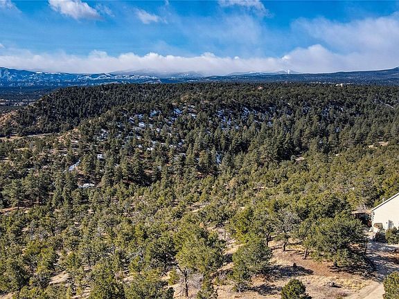 The acreage is entirely treed with a range of pines including pinon and cedar. There is a fully drywalled two car garage with a loft artist's studio, a woodworkers dream he shed and adjoining green house with heat and lights.