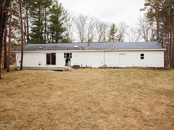 Welcome home to this very well maintained house on almost 3 acres! New carpet and tile flooring throughout the home brings it to life. All three bedrooms have walk-in closets and plenty of storage. Lots of natural light comes through the skylights and really light up the open floor plan. Outside you'll find a huge 2-stall garage and two sheds to fit all your toys! Watch the wildlife from your deck and breath in the fresh air this private lot offers! Don't miss out on this one! Call today!Call Molly Smith 616-893-4362 to make an appt.