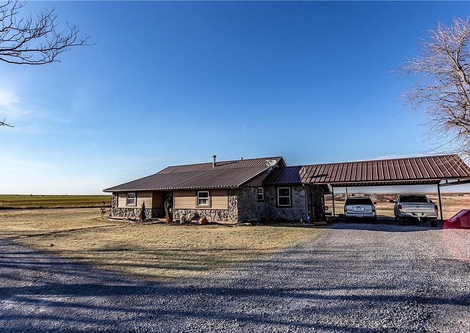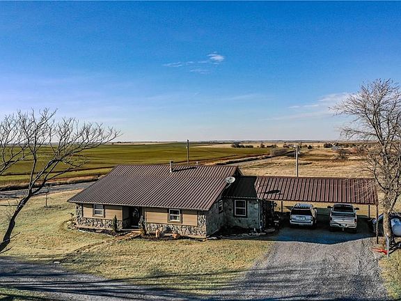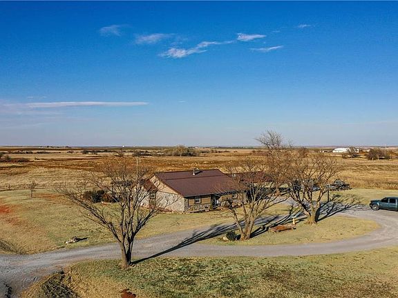 Your opportunity to live in the country with the great sunsets of Western Oklahoma. This updated charmer is ready for new owners. Island in the kitchen provides great workspace as well as serving as an eating area. Step out from the kitchen to a large covered patio. The great master suite will ensuite bath and walk-in closet. Wood burning stove to warm the chill off of a cold day. New storm shelter. Double carport. The metal roof was put on in 2012. Beautiful cabinetwork. Do not miss out on this great buy!!!! City water.