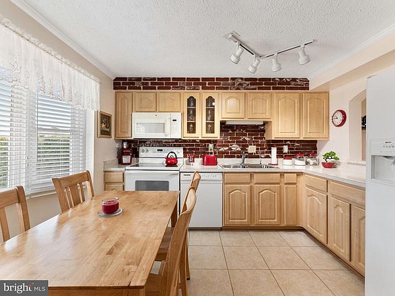 Rare Gem in Pristine Condition! Stunning brick front townhome offering 3 bedrooms, 2 full and 2 half bathrooms. Walk-in greeted by the statement faux-brick finish accent wall in the eat-in kitchen with cathedral light oak cabinets, bay window, & pass through window for easy entertaining into the dining room, white appliances including mounted microwave, dual sink, and track lights. Oak hardwood floors and neutral paint flow into the dining room and living room which are filled with natural light. Rare and unique archway separates the dining room and sunken living room, which leads to the rear deck with steps leading down to the backyard. Additional living room features include an electric fireplace with white mantel & recessed lighting with a new sliding glass door. The second floor is home to all three bedrooms each with fresh carpets, neutral paint & ceiling fans and an updated full bathroom located in the hallway with white cabinets, chrome finishes, shower/tub combo with sliding glass door. The elegant Owner~s suite creates a cozy space with an electric fireplace and espresso oak mantel, crown molding, ceiling fan & accent wall bumpout, well-lit Onsuite with a large vanity mirror, white cabinets, chrome finishes,stall shower, & crown molding. The incredibly finished walk-out level basement is spacious,with paneled accent walls, wood column, brick hearth fireplace with mantel, recessed lighting, second half bathroom, mini bar nook, & partially finished laundry room with space for a home gym and/or storage. New glass sliding door access to the brick paved patio and fenced-in backyard. Convenient access to Germantown Plaza including DSW Designer Shoe Warehouse, Germantown Library, grocery stores, restaurants, etc. and I-270. A/C replaced 2018. Hot Water Heater replaced within the last 5 years. Air Ducts cleaned Oct. 2019. Shows like a model home!