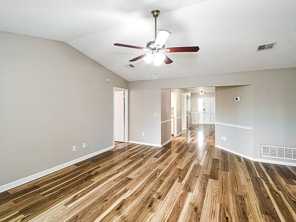 Please note, our homes are available on a first-come, first-serve basis and are not reserved until the lease is signed by all applicants and security deposits are collected. This home features Progress Smart Home - Progress Residential's smart home app, which allows you to control the home securely from any of your devices. Want to tour on your own? Click the "Self Tour" button on this home's RentProgress. Enjoy the convenience of single-story living in this three-bedroom, two-bathroom rental home in Jacksonville. Laminate floors, a stone fireplace, and a fresh coat of neutral paint grace the living room. In the dining room, tray ceilings and a glass and chrome chandelier illuminate the space. In the kitchen, meal prep is a breeze thanks to the stainless steel appliances and granite countertops. The master suite offers a ceiling fan for comfort and shiny laminate floors for style. Its private bath features a new subway tile backsplash and shower surround. Outside awaits a huge, shady, fenced-in backyard to enjoy. Schedule a private tour of this renovated rental home in Jacksonville today!