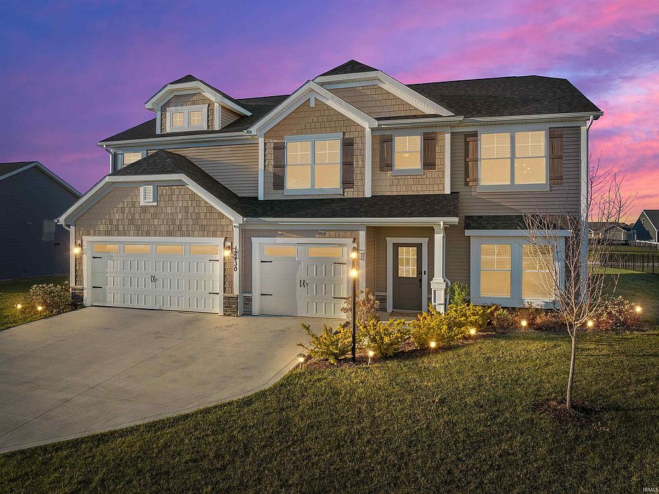 Experience comfort and modern living in this pristine, 2-year-old home nestled in Southwest Allen County! Located in Palmira Lakes on a .30 acre waterfront lot, this spacious 3,316 square foot 2 story offers 5 bedrooms / 3 full bathrooms plus a loft/flex space and 3 car garage. Designed for today's lifestyle with 3 living spaces to meet your needs for home office/formal dining/exercise room and upper & main level living areas. This home has a large kitchen with island, quality cabinets, granite counters, tile backsplash, stainless steel appliances and recessed & pendant lighting. Other features include many windows for an abundance of natural light, 9’ ceilings on the main level, great room fireplace, drop area with hooks & cubbies just off the garage, and 4 spacious bedrooms on upper level and one bedroom/den on the main level. All bedrooms have walk-in closets! The master suite has ample space for furniture, a tray ceiling and bathroom with tile shower, garden tub, double sink vanity, and HUGE walk-in closet. Convenient 2nd floor laundry is accessible from master bedroom & hallway. Outback is a covered porch and oversized patio with beautiful pond views. Great location convenient to shopping, restaurants and SWAC Schools.