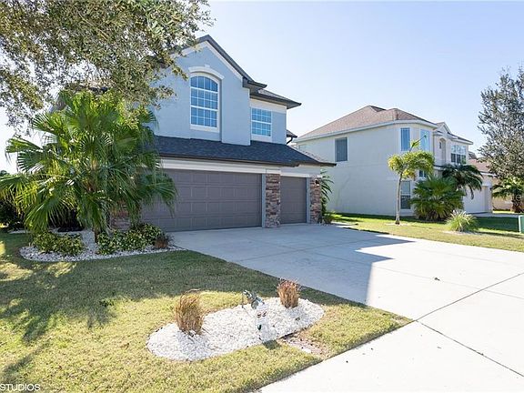 Newly renovated, well maintained 2 story home with oversized driveway located in River Plantation. Home is furnished with 4 bedrooms, 3 baths, 3 car garage, screened-in pool with a half bath all overlooking a beautiful pond. The kitchen was renovated for the perfect home chef, with a six-burner gas stove, double oven, farm sink, with a large kitchen island. The owner's suite is oversized with a cozy fireplace, two walk-in closets, private toilet, soaker tub, and a stand-up shower. Brand new roof with a transferable warranty with gutters! With the rain we get in Florida, gutters are a must! All windows have a solar film which reflects the UV and thermal heat to help reduce the cooling demand and lowers your electric bill. This home has two AC systems which are managed by WiFi thermostats, all controlled by your phone. Got Gas? This home has a propane 6 burner cooktop and is set up with a gas or electric dryer. Premium waterproof vinyl flooring throughout the house with solid oak stairs adds to the comfort of this home. This home has a generator plug with breakers to quickly and safely power your house in a power outage event. The front of this home is north facing which helps keep the garage a little cooler and the south-facing pool provides day-long sunshine and lovely sunsets. Keeping the pool crystal clear is easy with a new pool pump and filter was replaced in 2020. Beautiful and easy to maintain landscaping with plenty of mature palm trees and soft zoysia grass. The yard has a sprinkler system which is well-fed so no extra water bill from the county. The property has a french drainage system on both sides of the property which helps quickly dry your yard. This house has gutters connected to the drainage system so you don't have to worry about heavy rains making a mess of your property. River Plantation is an active community with amenities like a large and spacious community pool, clubhouse, playground, basketball and tennis court, nature trail and plenty of newly paved roads to bike around. The location is IDEAL and very convenient to almost everything! You are only 30 minutes to downtown Sarasota or downtown St. Pete. One hour to Tampa International and 45 minutes to downtown Tampa and 5 minutes to the Fort Hamer boat ramp. This home is located in an excellent school system at all levels with a new high school. Is this the house you call your new home?