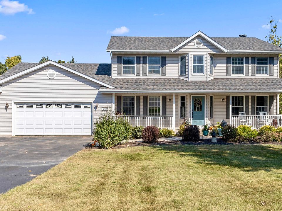 Wake up to stunning backyard views and beautifully landscaped grounds in Roscoe’s Whispering Winds neighborhood. This 4-bed, 2-story sits on 2 acres at the end of a cul-de-sac, offering privacy and space to play. All bedrooms are upstairs, including a primary suite with walk-in closet and jetted tub overlooking the trees. The lower level is fully exposed and unfinished, with walk-out access and a gas fireplace that has never been used, ready for your ideas. Outside, enjoy two patios, one perfect for bonfires, the other for a future greenhouse plus a playground area waiting to be reimagined. With two living rooms, formal dining, eat-in kitchen, main-level laundry, central vac, and updates like a newer roof, gutters, and AC, this home blends convenience, charm, and potential just minutes from schools.