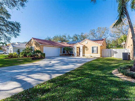 Beautiful 3 bed, 2 bath, 2 car garage in the tree lined Trilogy neighborhood in Miramar, This well kept home has a new pool 2020 and Solar Panels to make it the most energy efficient home in the area. Current FPL bill runs an average of $79 per month to power everything. Features vaulted ceilings and neutral tile throughout the home with a modern kitchen with wood cabinets, granite countertops & stainless steel appliances. The master suite has a newly renovated bathroom - an ultimate spa experience complete with a full body shower & glass door shower. The backyard is the ultimate entertaining oasis featuring a waterfall with the pool, a deck, and sitting area. The scene is further enhanced by a hand painted mural by artist Leâcreep that completes the look with artistic sophistication.