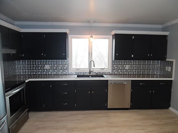 Just outside of town on 1 acre lot this ranch home has been remodeled inside. Living room with fireplace, eat-in kitchen w/SS appliances. Full bath with laundry hookup and 2 bedrooms. Large sunroom with wooded views. Lower level has a kitchen, bath a possibility of 2 additional bedrooms and living room. Perfect for a mother-in law suite. Paved circular drive to a 1 car integral garage.