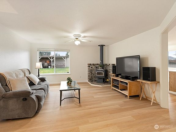 Step into this charming 3-bed, 2-bath rambler boasting new quartz countertops, fresh interior paint, and luxury vinyl plank flooring throughout. The solid wood cabinets feature new gold hardware, complementing the new sink and gold faucet for a touch of elegance. Enjoy the convenience of a 2-car garage, stainless steel appliances, and a brand new furnace, all set in the award-winning Snohomish School District. Just outside the slider, you'll find a nice deck and yard with green grass, a large shed, and woodshed to use with the cozy wood stove. This home seamlessly combines modern upgrades with timeless charm, offering both comfort and style in a coveted location. Don't miss out on this affordable gem in a fantastic neighborhood.