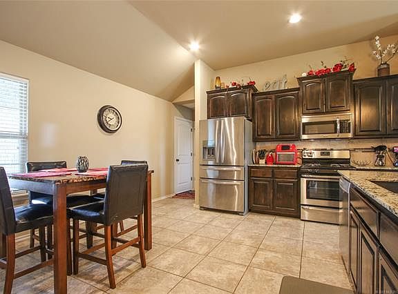 Beautiful home in beautiful Creekside! Pretty granite kitchen has stainless appliances, under mount sink & pantry. Spacious living room with gas log fireplace is open to the kitchen. Nice master suite with split vanities, whirlpool tub, sep shower & lg walk-in closet. Split bedroom plan. Great 3-car garage with epoxy floor! Cov'd patio & roomy backyard. Close to schools. Shop in Owasso or Collinsville! Super nice, and the PRICE IS RIGHT!