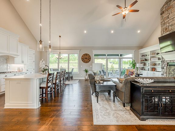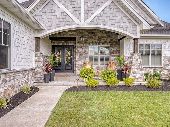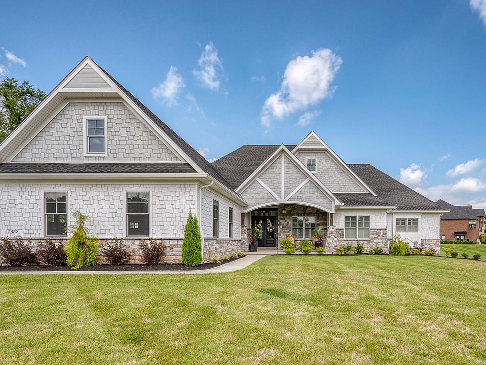 Welcome home to your new Home Sweet Home! Practically brand new (just one year old, built by Infinity Homes) this home offers you luxury, tranquility, and more! Nestled in the one-of-a-kind North Oldham neighborhood of Poplar Woods in Goshen, this 5 bedroom, 3.5 bath home offers 4700+ finished square feet! An open ranch floor plan with a finished lower level (which is equipped with plenty of egress sized, day lit windows!), sits comfortably on this .63 acre estate lot. Professional landscaping compliments the spacious covered front porch as you are welcomed into the elegant Foyer. The openness of the floor plan unfolds before you; the expansive Great Room accented with vaulted ceilings, custom built-ins, and fireplace, with the Formal Dining Room adjacent (cont)... (complete with coffered ceilings), flows into the highly sophisticated Kitchen. Distinguished with GE Cafe appliances, a gas cooktop, Advantium oven, wall oven, French door refrigerator, generous sized center island, soft close drawers and cabinets throughout, under lit cabinetry lighting, and breathtaking pendant lighting, the Eat-In Kitchen offers all of the beauty you are seeking! The main level Master Suite was designed to be a true haven of rest and relaxation - complete with lit tray ceilings, three pane slider door that opens directly from Master to rear patio oasis, an en-suite Master Bath with stand alone soaking tub, walk in shower, dual vanities, and a Master Closet/Dressing Area complete with custom shelving design. The main level also offers three additional bedrooms (one of which can also serve well as a home office), two additional bedrooms complimented a Jack and Jill bath design, a guest powder bath, main level laundry and mudroom, plus direct access to the attached three car garage. Additional perks throughout this home include high level finishes such as wide planked hardwood floors, 8 ft solid interior doors and openings, plus extensive crown molding and millwork throughout. The bright and cheerful lower level provides a Second Family Room, plus wet bar and Billiards Area which allows plenty of natural light to stream in via the daylit windows, a fifth additional bedroom, and a full bath. In addition, you'll discover multiple unfinished storage spaces in the lower level, and additional unfinished space that can be finished in the future if the new buyer desires additional living space. All bedrooms in this home are equipped with walk-in closets. The amenities of this home extend beyond the interior. You'll love the outdoor living opportunities this home presents with its very large rear patio, covered with a vaulted ceiling and finished with a stamped concrete floor surface - it's practically an outdoor Great Room! The views from the patio are of the fenced level rear yard, which back ups to protected conservation area - no neighbors behind! The lot is equipped with a digital sprinkler system outfitted with app control. In addition to freshly installed professional landscaping and the black iron rear yard fence, the homeowner has also bestowed several new upgrades to this property in recent months, including a new epoxy finished garage floor, plantation shutters, window treatments, and custom exterior landscape lighting. Poplar Woods is a community that offers beautiful walking trails throughout in which you can enjoy the showcased neighborhood fishing pond complete with waterfall and mature trees. The conservation spaces are abundant throughout this community which provides for animal sanctuaries and open nature spaces! Goshen is enveloped in the heart of Oldham County's beloved horse country - rolling green pastures and horse fencing makes for a serene scenic drive! This community is located just a few miles from access to the Gene Snyder, I-71, the Watterson Expressway, and within close proximity to River Road which provides direct access into the city of Louisville with no interstate exposure. Districted for the award-winning North Oldham School District, 12432 Poplar Woods Drive offers everything you've been searching for. Call the list agent today so that you don't miss out on this unique opportunity!