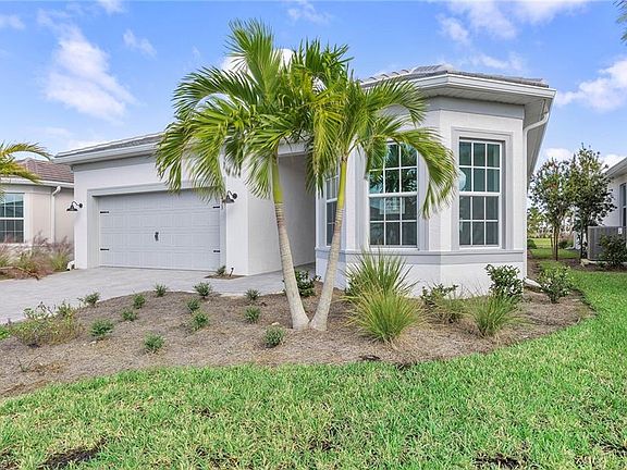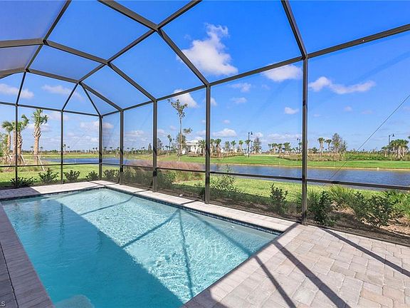 Special financing available. New construction home available now. The Prestige one-story floorplan has been built with a pool, 2 bedrooms, a den, 2.5 baths, & 2-car garage on a beautiful water view! Kitchen open to the gathering room, being built with center island, stainless steel appliances, upgraded Quartz counters in the kitchen and bathrooms and screened in covered lanai. TerraWalk features private neighborhood amenities including Internal walking trails throughout the community, 8-Acre lakeside resort amenity campus, Resort amenities including: Pool with spa, fire pit lounge, pickleball courts, tennis courts, bocce ball courts, event lawn, dog park, clubhouse fitness center, exercise studio, locker rooms, card rooms, large community room, catering kitchen, indoor/outdoor social lounge, plus an outdoor bar and grill. TerraWalk is a Gated community of new construction homes with a Luxury 8 acre amenity campus located in Babcock Ranch. Residents will enjoy expansive green space, abundant amenities, and utility-scale solar generation. Photos are for illustration purposes only, options may vary.