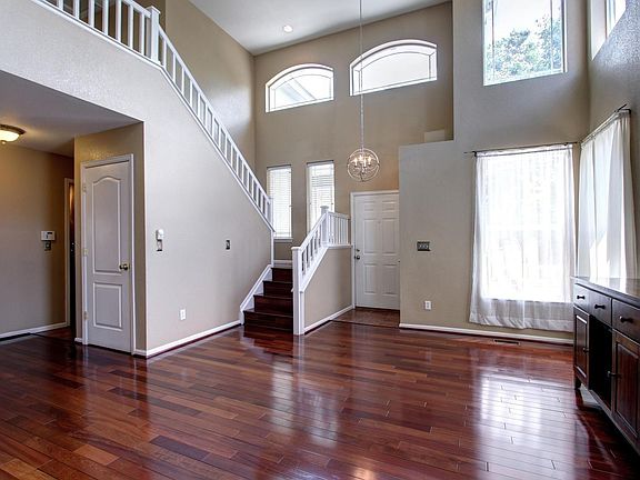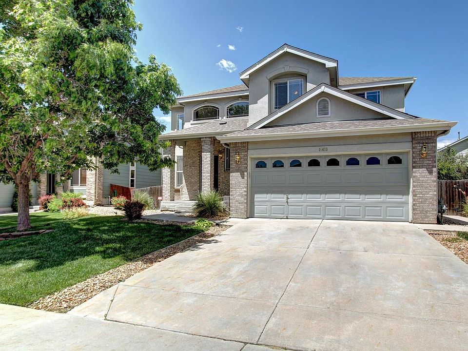 This home boasts a beautiful open floor plan with large picture windows and Brazilian cherry wood floors. A full 2 story entry and a family room that has built-in surround sound as well as a gas fireplace. The large master suite includes a very nice retreat, double entry doors, sliding glass doors that open to your own personal balcony. There is also a 5 piece ensuite with jetted tub with in-line heater and walk-in closet. The basement is finished and includes a conforming bedroom, bath, 2 living areas, one with a built-in flat screen TV as well as a laundry room. The home has a large back yard with a wood deck and second concrete patio. There are plenty of mature trees for shade. This home is located on a quiet street with close proximity to schools, greenbelts, and walking/bike paths. The home is also within close proximity to shops, restaurants, and entertainment! New sod in backyard as of 7/8/19 and re-finished deck and balcony!