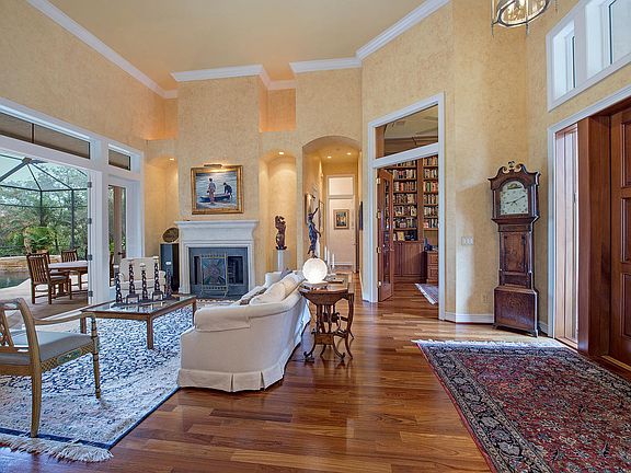 From the moment you enter through the imposing Mahogany doors you feel warmth as well as quality setting this custom home apart. Rich wood floors create a seamless flow whilst 15’ceilings w/ trays & moldings coupled w/ archways & art niches take perception of space & balance to the next level. Entertain friends by the living room fireplace, host gourmet dinners in the gracious dining room, or simply enjoy a good book in your library w/ floor-to-ceiling built-ins. The heart of the home is the granite island kitchen w/ breakfast bar open to a sunlit morning room & spacious family room. Top of the line stainless appliances include a 6-burner gas range, double ovens & warming drawer; the paneled Subzero refrigerator blends in with the clean lined custom wood cabinetry. Outdoors, pool & spa are embedded in a Pietra Dorata stone deck imported from Sardinia w/ extensive lanai spaces awaiting your family. Did I mention storage galore & whole house surround sound? Don’t miss this jewel! Neighborhood Description Audubon Sanctuary country club with an 18-hole Arthur Hill's designed golf course, tennis courts, fitness center and active sports and social calendar. Canoes available with ramp on the Cocohatchee River. Approx. 1.5 miles to Vanderbilt Beach and Delnor Wiggins State Park by the Gulf of Mexico. Just outside the gates you'll enjoy all the North Naples attractions from Artis-Naples, to the Waterside Shops, to Mercato and the North Collier Regional Park.
