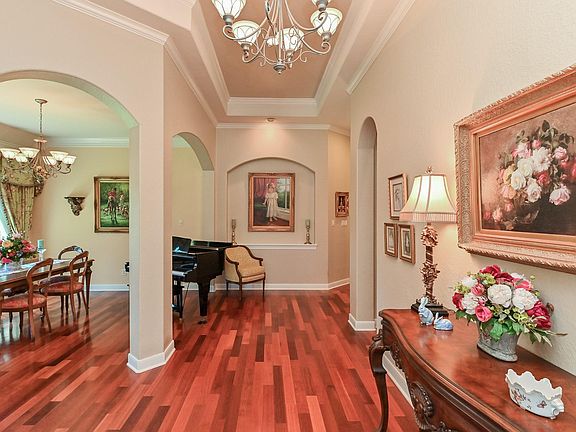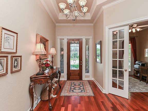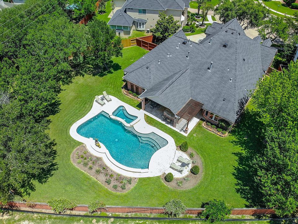 This really special home with a heated 25K gallon pool and spa is on one of the largest culdesac lots in the subdivision! In the huge back yard,there is also a extra large covered patio with a great outdoor kitchen. Also,has a full house gas generator. Backs to an easement for even more privacy (no back neighbors). This is a one story floor plan,with only one bonus bedroom upstairs (with its own full bathroom and 2 closets). Some people might also use this large bedroom as a gameroom. From the nice front porch,walk into a a lovely foyer. Study with French doors and bookcase,formal dining room,big family room with fireplace and built-ins,open island kitchen with quartz countertops and stainless appliances,lavish master suite with sitting area. Energy efficient double pane windows,tankless water heater,high ceilings,crown moldings,3.5 baths. One double and one single garage, full sprinkler system.