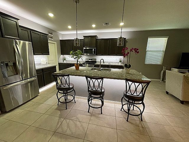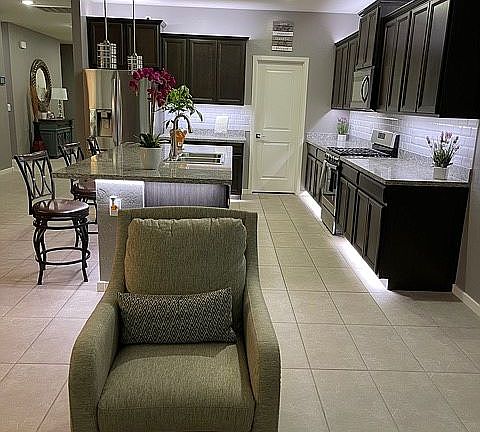 Lark single-story home features a social living area. The kitchen opens into the great room and dining area, as well as the covered back patio which is perfect for entertaining. The master suite is tucked away for privacy. Marbella Ranch is near the Westgate Entertainment District, Cardinals Football Stadium, Loop 101, 303 and Luke Air Force Base. Known for our energy saving features, our homes help youlive a healthier and quieter lifestyle while saving you thousands on utility bills.
