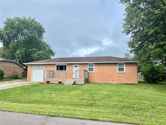 This 4 bed, 1 bath home is located in a rural subdivision with NO backyard neighbors! The brick & vinyl ranch boosts an updated kitchen, separate laundry room, new roof and gutters, potential for two master bedrooms. All appliances remain including washer & dryer. Home is Great Plains fiber optic ready!