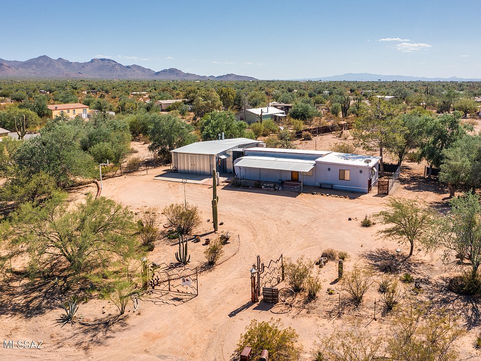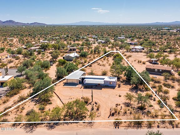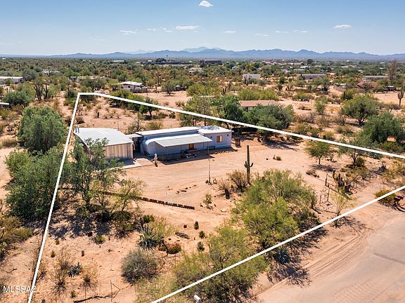 Opportunity knocks on just over an acre in Picture Rocks with mountain views & privacy! This unique, fully fenced, paved road up to property by & large has endless possibilities; build a home with a guest house, perfect terrain for gardening, wildlife habitat, recreational space... let your imagination run wild & go to work. This is a creative canvas awaiting your vision & personal touches. The mobile home is clean, quaint & a great place to surrender while finalizing & building your design. A gearhead's delight; large separate workshop/garage/storage building with an ensuite half bath & swamp cooler. Bring your horses, RV, trailers & use the land to build your dream with so many opportunities & no HOA! This is truly a potential-packed & special opportunity for the visionary. The icing on this cake is the close proximity to the gorgeous Saguaro National Park, elementary school, & Picture Rocks Community Center, which has a pool, skate park, playground, walking trails & ball fields. Hurry & check out this hidden gem before someone beats you to the punch.