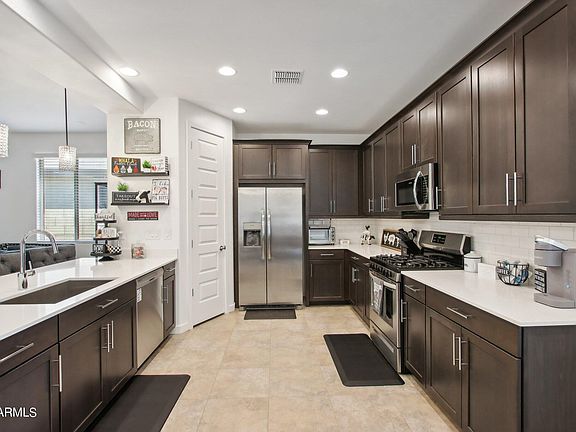 This spectacular 4-bedroom, 3-bathroom home built in 2022 is available now, so why wait for a builder to complete your dream home? It comes loaded with upgrades, ensuring modern comfort and style. Some key features: Spacious layout, gourmet kitchen, upgraded bathrooms. Home is also energy efficient lowering your monthly utility bills. Lets talk location~ close to shopping, restaurants, minutes from several golf courses and Luke AFB. Not to mention the highly anticipated theme park Mattel & VAI Resort, Westgate Entertainment District, Cardinals stadium and Desert Diamond Casino. Entertainment for all ages.