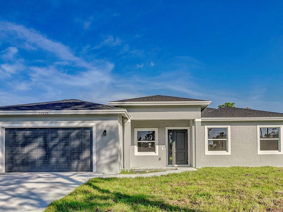 Wonderful opportunity to own a new construction home in Loxahatchee, FL. The Home is located on over anacre parcel and boasts 4 bedrooms, 2 bathrooms, 2 car garage plus an office /den just under 2300 SF of living space. Interior features include, stainless steelappliances, white shaker cabinets with quartz countertops,10' ceilings throughout, 8' doors, & ceramic plank tiles in all living areas. Exterior features include impact resistant doors and windows, up to 10,000.00 SF of Perimeter Sod and plenty of room for boats, RVS and a pool. Pictures are from a previously built and sold model. Exterior color and finishes for this home may vary. Seller will select the title company. Seller is offering a concession for an interest rate buy down.