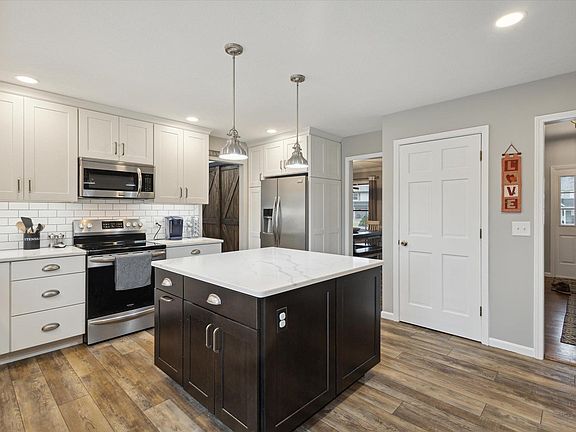 Welcome to this beautifully updated home in Granger’s popular Prairie Lane Estates. Your next home features a gorgeous kitchen with quartz countertops, full-height cabinets, an island and breakfast bar, subway tile backsplash, and stainless steel appliances. The new vinyl plank flooring leads right into the great room and the warmth of the gas fireplace. The luxurious master suite features an ensuite bath and large walk-in closet. Additional living space in the basement includes an office or workout space, large rec room, and laundry. Outside you'll enjoy the covered front porch looking out on the private cul-de-sac, as well as the fenced backyard where pets and children can entertain themselves while you entertain your guests with cookouts on the deck. And you can walk, bike, or golf cart to the private community park and playground. Updates include: complete first floor remodel, new cabinetry and countertops, luxury vinyl plank flooring, fresh paint, new light fixtures, furnace in 2018, A/C in 2021, all bathrooms (including vanities, tub, shower) in 2022, new upstairs carpet in 2024. This incredible move-in ready home is located in Penn–Harris–Madison’s Blue-Ribbon schools near shopping, dining, and the University of Notre Dame. Schedule your private showing today.