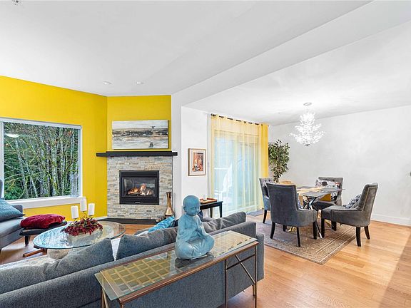 Private and peaceful settingSurrounded by treesBacking onto rocky creekNatural wood floorsOpen concept main levelModern kitchenGas fireplace