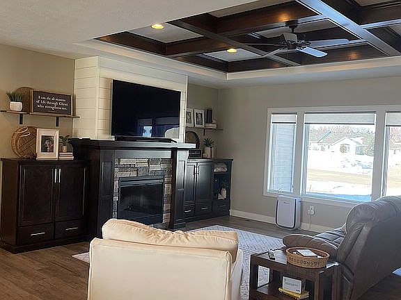 This house for sale by owner is a must see! **Seller has an "inactive" Realtor's License Spacious, open, quality construction, with TONS of natural lighting... This home has all the room you could need with 1,822 square feet on the main floor and was custom built in 2019. The kitchen features a large island with seating on two sides, a hidden door leading into a spacious walk-in pantry, and custom built birch cabinets with quartz countertops. A 12x16 covered composite deck is just off the dining room. The living room features an electric fireplace with built in cabinets on both sides and has a beautiful tray ceiling. The master suite has a walk-in shower, whirlpool tub, two sinks, HEATED tile flooring, and a large closet. The main floor also has a bedroom/office, laundry, and guest bath. The basement has three additional bedrooms (each bedroom has a walk-in closet), a large rec area, a bathroom with a separate shower/toilet room, and a storage/mechanical room with built-in shelving. This house also has a HUGE 3-stall heated garage with a water softener salt chute and 8 foot tall garage doors. Landscaping and lawn are complete with an underground sprinkler system with a separate meter to mitigate watering expenses. Let us give you a tour! Feel free to text/call Brice at 712-441-6262 with any questions or to set up a time to come see the house