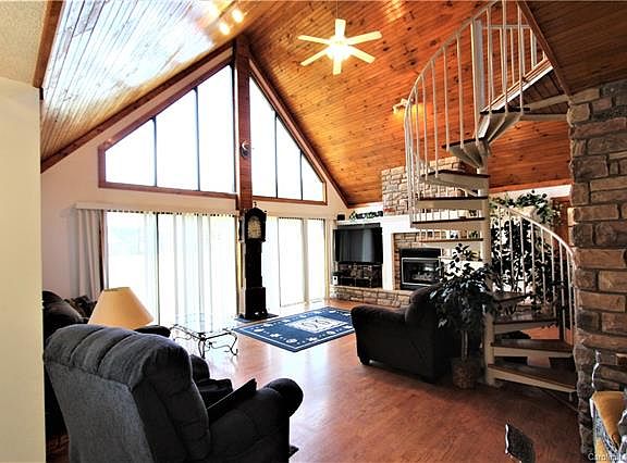 This beautiful three bedroom/two bathroom A-frame home has a stunning open floor plan with floor-to-ceiling windows that take center stage in the family room. A stone fireplace creates a cozy atmosphere while a spiral staircase leading to a loft overlooking the family room adds a unique touch to this home. French doors lead from the main living area to the Master bedroom. The master bath has double sinks and leads to a large walk-in closet. A covered back porch overlooks a 18.5x36 in ground pool with a brand new pool liner. Perfect for outdoor entertainment and summer fun!