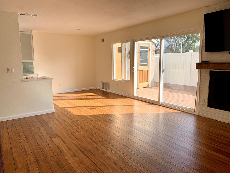Beautiful, clean, remodeled southwest facing 2bed/ 2 bath townhome in Cardiff on Caminito Septimo. 922 sqft. South west facing. Ground level, one story. ( nobody above) Family friendly and quiet neighborhood. Great school district. Newly remodeled. Bamboo flooring throughout, new bathrooms. Dimable Recessed lights (controllable w smart phone), 3 solatubes for natural light in bathrooms and kitchen. Led lights, so less bugs come in. Cooling/heating: forced air. Master bedroom has a closet with door. Master bath has rain shower, floating vanity. Second room has a built in closet. Second bath has an extra deep soaking tub. Laundry room with built in shelving and laundry hookup. Extra closet space with shelves. Kitchen has all new appliances ( dishwasher extra quiet, fridge with ice maker and filtered water, backless gas range , all less than 2 years old) , quartz countertop and built in filtered water at sink. Living room has a gas fireplace. Patio has extra storage room. 1 car detached garage and 1 designated parking space. Garage opens with smartphone. Community pool and park just a 5 minute walk. Water, trash included, 1 year lease, no pets. Great location, close to shopping and 1.5m to beach and downtown Encinitas. Please email with additional questions. Can show by appointment. $30 application fee per adult for credit check. Occupied until 12/5, available approximately on 12/14. Water and trash included