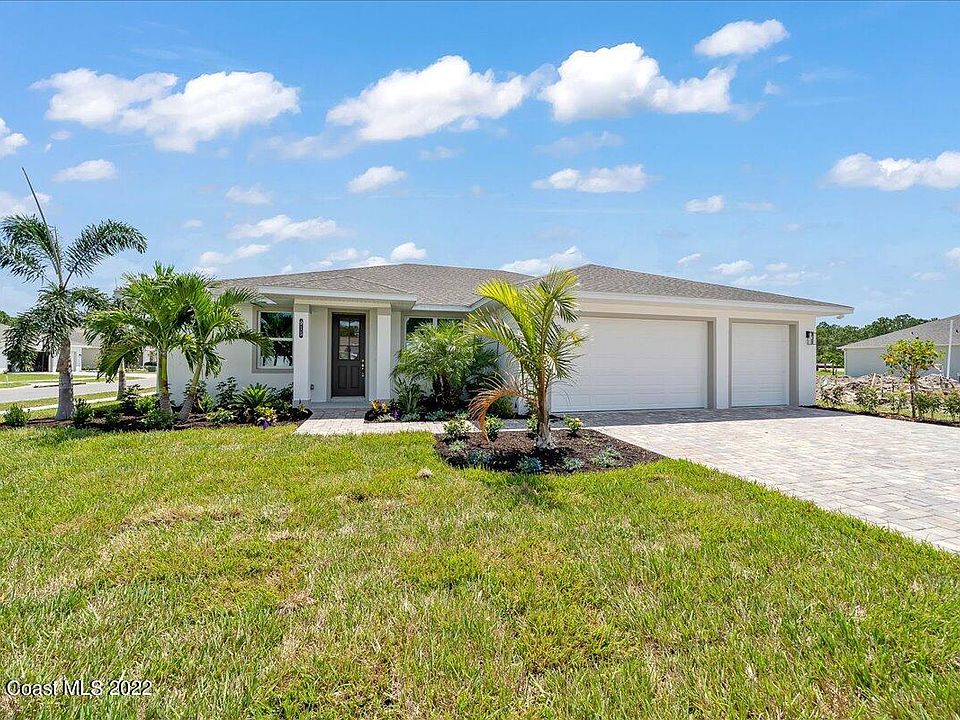 LOT 33 - Under Construction! Est. comp 3/2023 ...Sanibel Cove... NOW SELLING! Welcome to Palm Bay's newest exclusive community featuring 50 total new homes. Construction is well underway on this beautiful 3 bedroom, 2 bath, 3 car garage home with a large covered lanai on .39 acre. Enjoy a large great room / open plan design with Dining area, spacious kitchen with many beautiful upgrades. The master suite features 9'4'' ceiling, 2 large walk in closets, and Master bath retreat w/ large tile walk in shower, & dual sinks with granite countertops. Oversized Laundry room with extras! Included: vinyl plank flooring in all main living areas, decorative lighting, Ceiling fan in main room & master bedroom. Attention to detail in every aspect of this home from flooring, to lighting, cabinets & more more