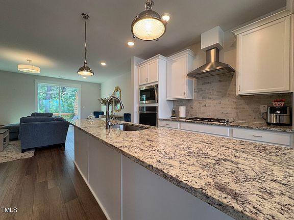 Prime West Cary location! Luxury townhouse! So much natural light, you'll be using the provided high-end blackout shades!! 4 Bedrooms 3.5 Bathrooms + 2 car garage. 1st floor includes versatile recreation room ideal for a home office, gym, or game room plus it includes a full bathroom, making it an ideal guest bedroom option. 2nd floor includes cheerful open layout complete with gourmet kitchen, gas cooktop, industrial style exhaust vent hood and massive kitchen island, eating area and living room leading to an open private deck. 3rd floor includes master bedroom, walk-in closet and gorgeous bathroom with tiled walk-in shower. The 2 additional bedrooms are good sized. All appliances provided including refrigerator and washer/dryer. Available about August 15th