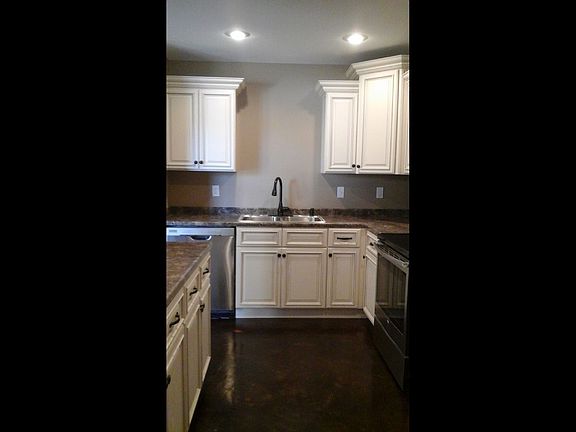 Lovely 3 bedroom, 2 bath home with open floor plan and acid stained floors throughout! Don't miss out on this great home! The foyer opens into the dining room, kitchen, and living room. The kitchen features stainless appliances, a breakfast bar, and beautiful cabinetry. The living room is very spacious and includes a tray ceiling, recessed lighting, and crown molding. The master bedroom is also very large and has crown molding and tray ceiling. You will be very impressed with the size and layout of the master bath! There are two vanities, separated by a large built-in storage cabinet, plus two walk-in closets! The two other bedrooms are located on the opposite side of the house. Outside, there is a covered patio and privacy fenced backyard! Call today to make an appointment to see this home!
