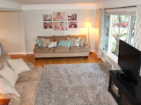 Welcome home to a fantastic 4 bedroom and 1.5 bathroom Lyndhurst Colonial on a beautiful tree lined street!! What a fabulous home with tons of updates including newer siding 2011, gutters 2011, roof 2011, carpeting in the bedrooms 2011 and renovated full bathroom in 2010!! Light and bright throughout. All appliances to stay. Hardwood floors on the 1st floor. Master bedroom with 2 closets. Partially finished basement with glass block windows. Beautiful landscaping as well as a fenced in backyard, large patio for entertaining and newer shed for extra storage!! Home warranty included!! Close to shopping, dining and freeway access. Priced at $155,000!!!