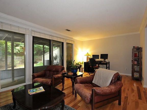 Great end unit in this very popular Brookhaven community. Two assigned parking spots right out front. Open floorplan with hardwoods on main. Fenced patio off of kitchen. Stainless appliances, white cabinets and tile floor in kitchen. Fresh interior paint. Community maintains exterior and grounds. Great roommate plan with two large bedrooms both with abundant closet space. Screened patio off main level, screened room off of master overlooking private back yard. Great location with EZ access to I-85, Peachtree and Buford Hwy.