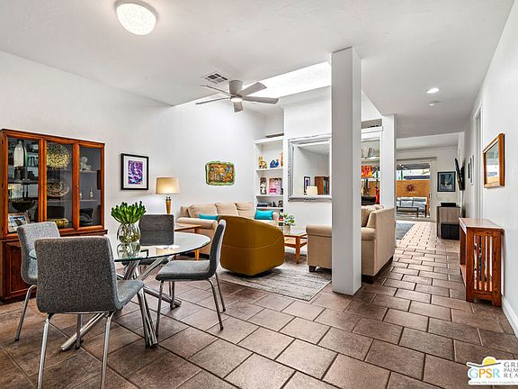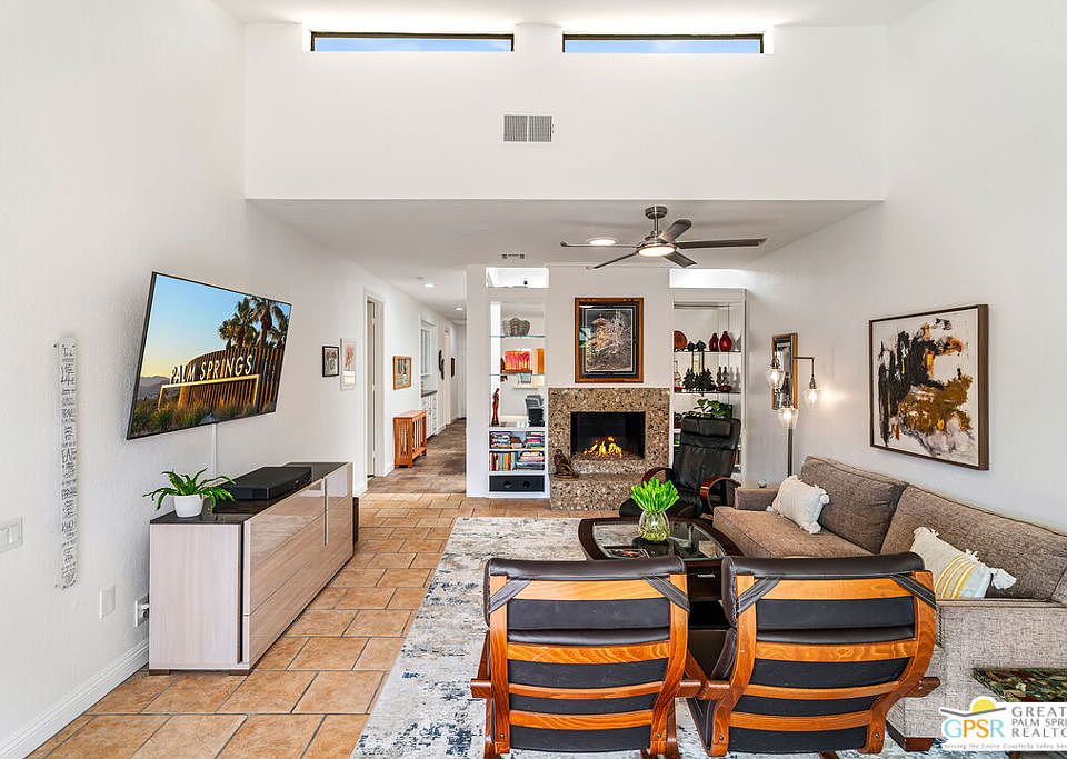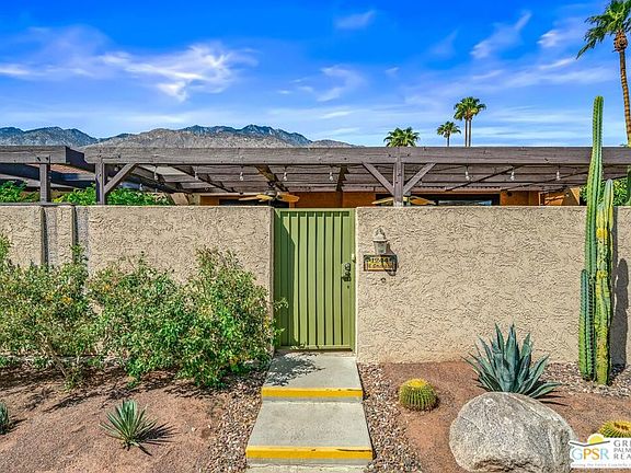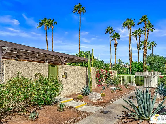 Discover the essence of desert living @ Palm Regency, one of Palm Springs' most beloved resort-style communities. This spacious 2 Bed 2 Bath single-level condo located in a quiet area of the community offers 1,595 sq. ft. thoughtfully designed for both comfort and privacy. Vaulted ceilings soar over dual living rooms separated by a cozy fireplace, creating an inviting flow of space perfect for entertaining friends or simply relaxing at home. A large private patio expand your indoor outdoor living, ideal for soaking in the sunshine, dining al fresco, or enjoying quiet evenings under the desert sky. The primary suite feels like a retreat with dual vanities and wonderful separation from the guest bedroom, while the updates throughout include dual-pane windows and doors, smart thermostat, newer AC and water heater (2020), and roof replaced in (2019) offer peace of mind. In-unit laundry makes everyday living effortless. Palm Regency itself is a lush oasis, known for its generous greenbelts and abundant amenities, including 2 sparkling pools, 2 spas, tennis and pickleball courts, and a clubhouse. The HOA covers exterior building and landscape maintenance, water, and trash, making ownership simple and carefree. Best of all, this prime location is just minutes from downtown Palm Springs, offering restaurants, theaters, museums, coffee shops, galleries, and shopping. Call for you private tour today!