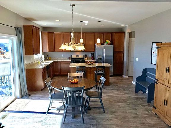 Just like NEW! This beautiful 2 year old ranch has 4BR, 2BA, 3 car garage & finished walk out Lower Level. You'll love the over-sized laundry room with maple cupboards, folding counter & musty sink. Mudroom has built-in cubbies. Kitchen has gorgeous maple cabinets with granite, porcelain plank tile & all stainless appliances. Engineered hardwood through out foyer, hall & great room (cathedral ceiling). Master bath has double sink & high vanity. Lower level has 9'6" ceilings with huge finished rec room & bedroom w/walk in closet. Rough-in bath in basement. Fully exposed lower level. 18' x 14' composite deck off the kitchen. White trim & 2 panel doors throughout.