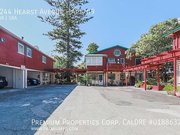 Top-Floor 2-Bedroom in Peaceful Garden Property This charming third-floor 2-bedroom apartment is tucked away in a beautifully maintained building surrounded by tranquil garden spacesoffering both privacy and convenience. Apartment Features: Bright and spacious floor plan Two comfortable bedrooms with ample closet space Separate dining area and generous living room Great natural light throughout Quiet top-floor location with no upstairs neighbors Community Highlights: On-site laundry for convenience Parking available Close to North Berkeley and Downtown Berkeley BART, plus major AC Transit lines Walkable to shopping, dining, and neighborhood trails Free Premium Concierge Services during your first lease term Reliable on-site resident manager Professionally managed for premium service A wonderful blend of space, comfort, and locationideal for roommates, a home office setup, or anyone who loves having a little extra room. *Please note photos in ad may be of similar unit. Hearst Garden Apartments 1244 Hearst Ave Berkeley, CA 94702 PROPERTY DESCRIPTION Hearst Garden Apartments is a 23-unit complex offering a mix of studios and 1-and-2 bedroom apartments. This beautiful complex set back off the street feels like a slice-of country, but is in the heart of Berkeley. The complex features 4 separate unique buildings from various architectural periods. Many units feature hardwood floors and remodeled kitchens with granite counters. These apartments have large living areas and are set in a beautiful courtyard with gardens and off-street parking. THE PREMIUM DIFFERENCE This property is professionally managed for Premium Service! We treat you like a customer and you can expect a high level of service from a friendly staff who's primary goal is to make you happy. We resolve any maintenance issues quickly and efficiently. Our properties are well maintained inside and out. Our property has access to a Conscientious On-Site Resident Manager to provide you with even more service. Why rent an ordinary property when you can live in a Premium Property? NEIGHBORHOOD INFORMATION A great centrally located neighborhood with easy access to all forms of public transportation, near 4th Street Shopping Area. If you like to cook at home, you can shop close by at Trader Joe's, or take a short ride to Berkeley Bowl West. Located nearby is Berkeley's International Marketplace District. You can find foods from around the world from markets such as Middle East Market, Mi Tierra Foods, or even grab a bite of Spanish tapas at La Marcha. Bread lovers make it a point to go to the nearby Acme Bakery, famous for its delicious fresh breads and pastries that are served at fine dining restaurants and sandwich shops all over the Bay Area. Commuters and students alike will find BART running to San Francisco and back regularly from North Berkeley, Ashby and Downtown stations. For those of you who use ride-sharing services, you should experience reasonable rates to and from the UC Berkeley, your local workplace or neighboring areas with quick pick-up times.