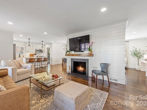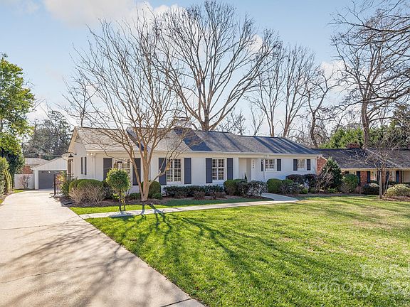 Gorgeous single-level living on a spectacular lot in one of Charlotte's most coveted neighborhoods. Head-to-toe renovation lives like new construction. And it's not just beautiful, but has a NEW roof, NEW HVAC, NEW water heater, and sealed crawlspace. Every inch of this home has been thoughtfully designed with a gracious lifestyle in mind. Dazzling kitchen features marble countertops, stainless steel appliances, and the cutest wine fridge tucked into center island. Generously sized bedrooms are all on one level, with fully renovated bathrooms. Hardwood floors throughout all living spaces. Open floorplan is perfect for entertaining, with a dual-sided fireplace at the heart of the home. Enjoy the outdoors from the screened in porch or the fire pit in the middle of the backyard, overlooking spacious lawn surrounded by mature trees. Detached 2-car garage has additional storage/flex space. Steps from Freedom Park, the Greenway, & Park Road Shopping Center. Minutes to Uptown.