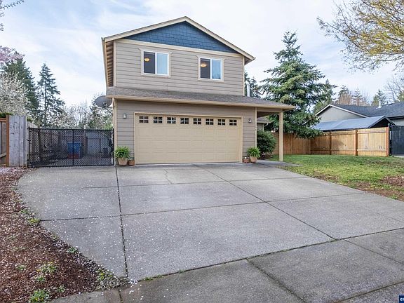 Welcome home to this beautiful 2 story home in a quiet South Salem neighborhood. Featuring 3 bedrooms, 2 and 1/2 baths. Primary bedroom includes 2 large closets and an ensuite bathroom. Upstairs laundry. Living room offers high ceilings and a wood burning fireplace. Enjoy your kitchen with ample counter space, super quiet dishwasher, newer ss oven and microwave. RV pad and 2 car garage offer plenty of parking, storage galore in this home. Equipped with central AC, you’ll be ready to tackle the summer heat!