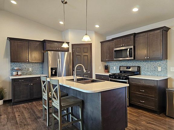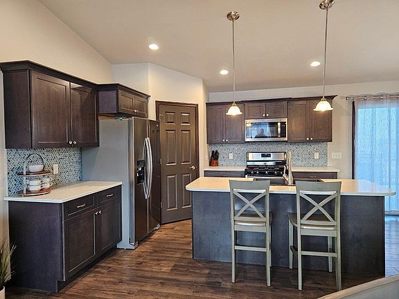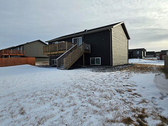 Discover comfortable & convenient living in this clean, well-maintained split foyer home constructed in 2019 in the Northern Lights Subdivision. Boasting a fully finished open concept layout, this home features 3 bedrooms, 2 bathrooms, & a 2 car garage. Situated close to Ellsworth Air Force Base & Rushmore Crossing, it offers easy access to the base, restaurants, shopping, & more. Inside, enjoy the open concept floor plan featuring the kitchen, dining room, family room, 2 bedrooms & a hallway bathroom. The kitchen is a culinary dream, showcasing Mocha cabinetry, Quartz countertops, stainless steel appliances including a gas range, a custom-tiled backsplash, and walk-in pantry. The large kitchen island provides both functionality and style, perfect for entertaining. The lower level presents a generously sized family room with the potential to add a fourth bedroom, catering to your evolving needs. The well-appointed master bedroom awaits, complete with a walk-in closet and master bathroom featuring a tiled walk-in shower with a glass enclosure. The laundry room is conveniently located off the master bedroom. Step onto the spacious 10x16 back deck with stairs leading to a landscaped yard where dark stone landscaping rock meets freshly laid sod. Exterior premium upgrades include class 4 impact-resistant 50-year shingles, LP Smart side with a Diamond Kote finish, & Anderson Windows. Don't miss the opportunity to make this exceptional residence your own – schedule a viewing today!
