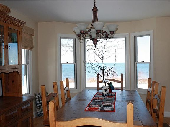 Fully furnished top to bottom, 3 bedroom 3 full bath, beautiful home right on Lake Ontario. Water views from every room in the house. Large living room with gas fireplace, formal dining, breakfast nook kitchen, office area, master suite, finished basement with wet bar, wrap around porch with lake views, plus a 2 level deck overlooking the huge yard and lake. First month's rent and security deposit required upon application approval. 1 year lease. No pets, no smoking. Tenant responsible for lawn care, snow removal, and light general home maintenance upkeep.