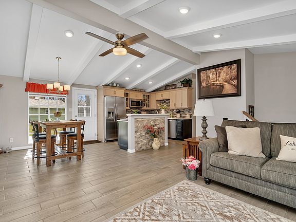 Welcome to Lake Holiday! This stunning open concept home offers vaulted ceilings, gorgeous kitchen with SS appliances, soft close cabinets, & island. Home was completely rehabbed in 2021 (kitchen, baths, windows, siding, HVAC & HWH) 2022 - NEW roof with transferable warranty, skylight, downspouts & gutters. All new custom shades as of 2022. Beautiful yard with patio perfect for those family BBQ's. An additional 2 car heated garage for that added space for entertaining, storage & more. The long driveway provides even more parking space for a boat, camper or those overnight guests. Everyday living with the perks of Lake Life. So many amenities for your family to enjoy. Everything from beach, clubhouse, boating, water-skiing, fishing, dog park, walking paths, tennis & pickle ball court, skate park and more. Nothing to do here but move in! Wait till you see this beautiful home in person!