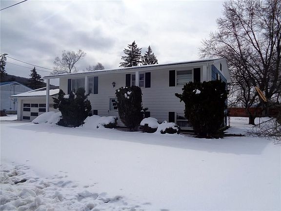 Split level home sitting on a large size lot on the out skirts of the City of Hornell. Located on a nice cul-de-sac that is just off the beaten path. This home is in need of some modern TLC. But what a location to invest in!!! There is a nice open floor plan on the upper level with three bedrooms and one and a half bathrooms. On the lower level are two more bedrooms, laundry room, a family room and an area that was used as a beauty salon or would make a nice den area. Plenty of closet space through out the home, hardwood floors and a large size fenced in yard with an in ground pool! There is also an attached two car garage.