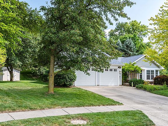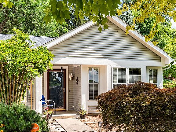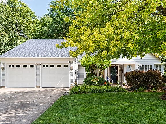 This 1 story contemporary home on a quiet cul-de-sac has loads of curb appeal due to its lovely landscaping & shade trees. Entryway, living & dining rooms are light filled & open w/vaulted ceiling. Beautiful eat-in kitchen features wood plank porcelain flooring, custom cherry cabinets, granite counters, subway tile backsplash & bay window seats. Family/media room offers a WBFP, ceiling fan & sliders leading to private, wooded backyard w/huge patio & water featureperfect for alfresco dining/entertaining! Primary bedroom en-suite w/tub, shower & double vanities. 2 additional bedrooms, Full hall bath, 1/2 bath & laundry room. 2 car attached garage & storage shed. Schedule a showing soon to tour this impressive home! FP/chimney not warranted.