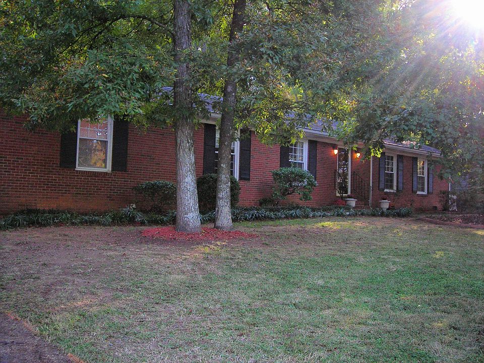 All brick ranch with LR,DR, eat in Kitchen, large den with fireplace, spacious entry & hallway,large master bedroom w/ recently remodeled tile bath, plenty of closets and heated & AC laundry & storage area in rear of carport. Ceramic tile & lovely hardwood floors. Double hung replacement windows. Neighborhood Description Quiet established older neighborhood with some newer homes and mainly large brick ranches on .4+ to 3+ acre lots and private lakes. Easy access to uptown Charlotte. A desirable neighborhood in an affordable price range in Charlotte's East side close to Mint Hill.