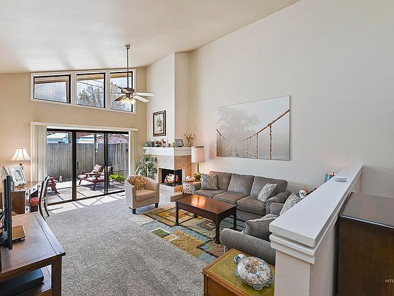 Centrally Located patio home on the Central Bench in Boise! Split bedroom plan with two large bedrooms plus a craft room or home office area. The primary suite features a bathroom and sliding glass doors to the back patio area. Light and open with soaring vaulted ceilings in the great room, large windows bring in the light from outside, two sided wood burning fireplace all open to the kitchen and dining room! The light and bright kitchen feature white cabinets, hardwood floors, refrigerator, pantry vaulted ceilings, a window over the sink looking out to the front covered patio! Oversized two car garage with additional storage area!